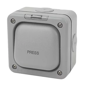 MK IP66 10A 1-Gang 1-Way Weatherproof Outdoor Switched Push Switch with Neon