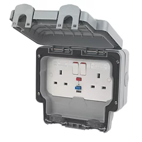 MK Masterseal Plus IP66 13A 2-Gang DP Weatherproof Outdoor Switched Active RCD Socket