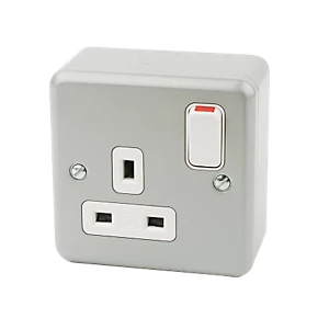 MK Metalclad Plus 13A 1-Gang DP Switched Metal Clad Plug Socket with White Inserts